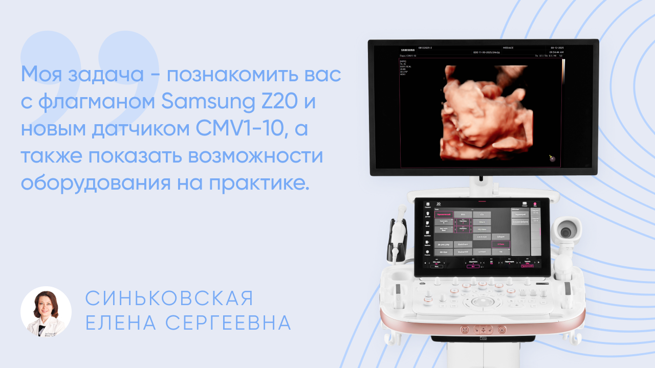 Уважаемые коллеги, в этом видео Елена Сергеевна раскрывает возможности объемной УЗ-визуализации в акушерстве и гинекологии на флагмане Samsung Z20, проводит презентацию нового датчика CMV1-10 и мастер-класс на пациентке в III триместре беременности с использованием новых технологий визуализации.